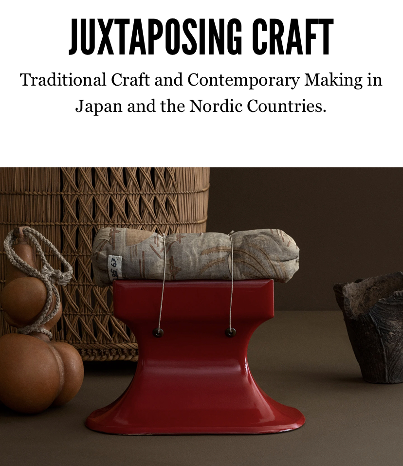 Juxtaposing Craft explore le craft dans un échange entre les pays nordiques et le Japon. L'exposition réunit des œuvres contemporaines de designers, d'artistes et d'artisans avec des objets provenant des collections des Musées nationaux des cultures mondiales.