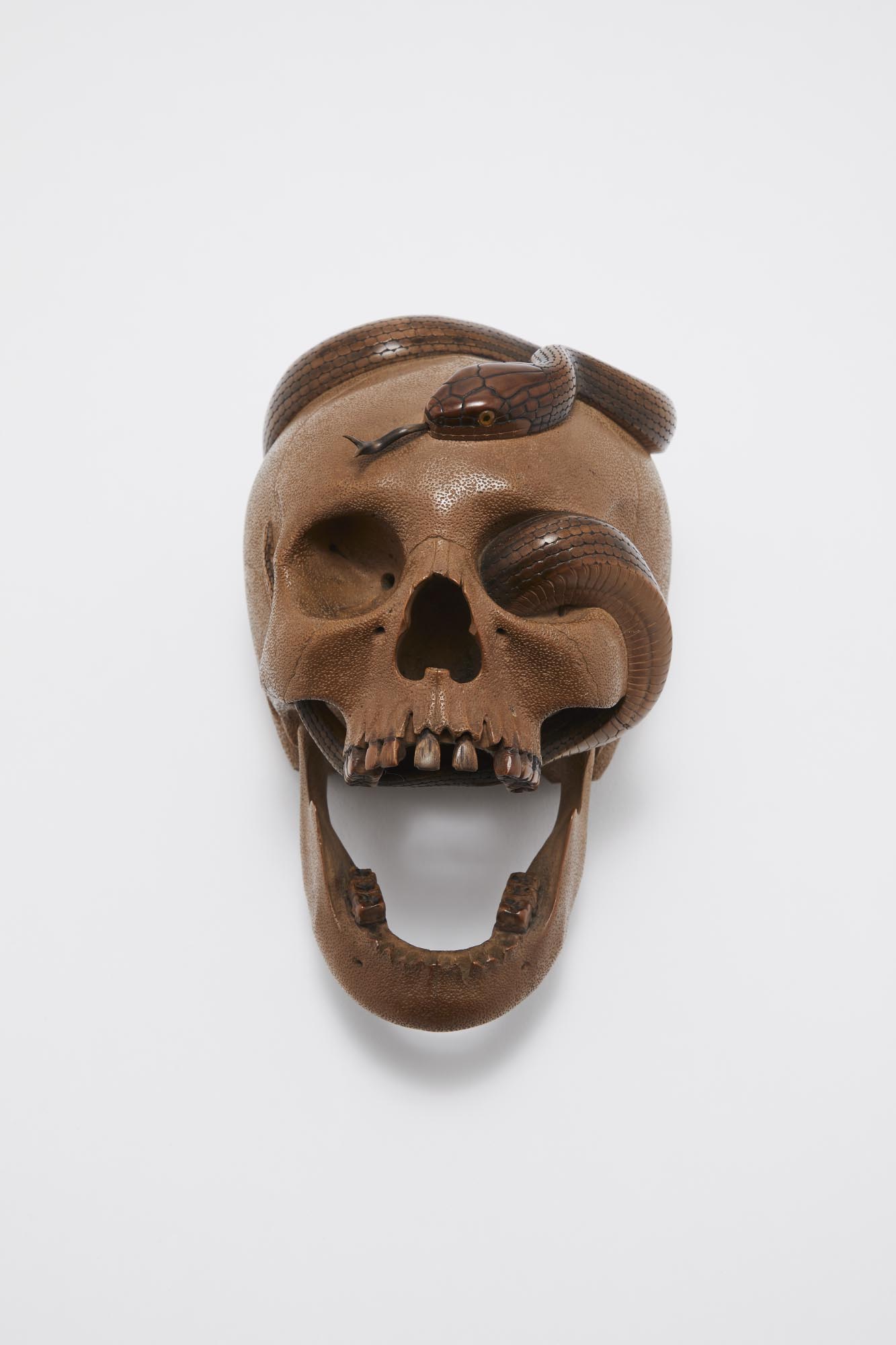 𝐏𝐚𝐫𝐦𝐢 𝐜𝐞𝐬 𝐩𝐢𝐞̀𝐜𝐞𝐬, 𝐮𝐧𝐞 𝐕𝐚𝐧𝐢𝐭𝐚𝐬 𝐣𝐚𝐩𝐨𝐧𝐚𝐢𝐬𝐞 𝐞𝐱𝐜𝐞𝐩𝐭𝐢𝐨𝐧𝐧𝐞𝐥𝐥𝐞, 𝐮𝐧 𝐨𝐤𝐢𝐦𝐨𝐧𝐨 𝐞𝐧 𝐛𝐨𝐢𝐬 𝐝'𝐈𝐳𝐮𝐦𝐢 𝐒𝐮𝐤𝐞𝐲𝐮𝐤𝐢 (𝟏𝟖𝟑𝟖-𝟏𝟗𝟐𝟎) 𝐪𝐮𝐢 𝐫𝐞𝐩𝐫𝐞́𝐬𝐞𝐧𝐭𝐞 𝐮𝐧 𝐬𝐞𝐫𝐩𝐞𝐧𝐭 𝐬𝐞𝐫𝐩𝐞𝐧𝐭𝐚𝐧𝐭 𝐚̀ 𝐭𝐫𝐚𝐯𝐞𝐫𝐬 𝐮𝐧 𝐜𝐫𝐚̂𝐧𝐞 𝐚𝐯𝐞𝐜 𝐮𝐧𝐞 𝐦𝐚̂𝐜𝐡𝐨𝐢𝐫𝐞 𝐢𝐧𝐟𝐞́𝐫𝐢𝐞𝐮𝐫𝐞 𝐚𝐫𝐭𝐢𝐜𝐮𝐥𝐞́𝐞 𝐞𝐭 𝐝𝐞𝐬 𝐝𝐞𝐧𝐭𝐬 𝐚𝐣𝐨𝐮𝐭𝐞́𝐞𝐬. 𝐒𝐞𝐬 𝐲𝐞𝐮𝐱 𝐬𝐨𝐧𝐭 𝐢𝐧𝐜𝐫𝐮𝐬𝐭𝐞́𝐬 𝐝𝐞 𝐦𝐨𝐫𝐜𝐞𝐚𝐮𝐱 𝐝𝐞 𝐜𝐨𝐫𝐧𝐞 𝐝𝐞 𝐜𝐨𝐮𝐥𝐞𝐮𝐫 𝐛𝐥𝐨𝐧𝐝𝐞 𝐟𝐢𝐱𝐞́𝐬 𝐬𝐮𝐫 𝐝𝐞𝐬 𝐩𝐚𝐢𝐥𝐥𝐞𝐭𝐭𝐞𝐬 𝐝'𝐨𝐫, 𝐞𝐭 𝐥𝐞𝐮𝐫𝐬 𝐩𝐮𝐩𝐢𝐥𝐥𝐞𝐬 𝐬𝐨𝐧𝐭 𝐫𝐞𝐧𝐝𝐮𝐞𝐬 𝐚𝐯𝐞𝐜 𝐝𝐞𝐮𝐱 𝐩𝐞𝐭𝐢𝐭𝐬 𝐦𝐨𝐫𝐜𝐞𝐚𝐮𝐱 𝐝𝐞 𝐜𝐨𝐫𝐧𝐞 𝐝𝐞 𝐛𝐮𝐟𝐟𝐥𝐞 𝐧𝐨𝐢𝐫𝐞. 𝐋𝐚 𝐥𝐚𝐧𝐠𝐮𝐞 𝐞𝐬𝐭 𝐞𝐧 𝐚𝐫𝐠𝐞𝐧𝐭. 𝐋𝐚 𝐭𝐞̂𝐭𝐞 𝐞𝐬𝐭 𝐝𝐞 𝐜𝐨𝐮𝐥𝐞𝐮𝐫 𝐛𝐥𝐨𝐧𝐝𝐞 𝐧𝐚𝐭𝐮𝐫𝐞𝐥𝐥𝐞. 𝐋𝐞 𝐫𝐞𝐩𝐭𝐢𝐥𝐞 𝐞𝐭 𝐬𝐞𝐬 𝐝𝐞𝐧𝐭𝐬 𝐬𝐨𝐧𝐭 𝐝𝐚𝐧𝐬 𝐝𝐞𝐬 𝐭𝐨𝐧𝐬 𝐨𝐜𝐫𝐞 𝐞𝐭 𝐛𝐫𝐮𝐧.