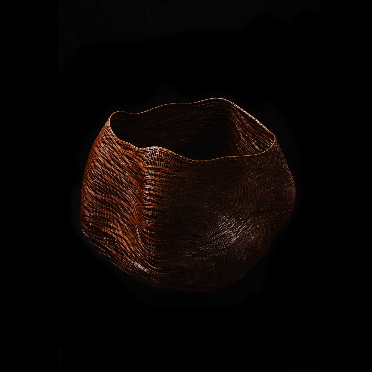 Jin Morigami est né en 1955 dans une famille de vanniers, est l'un des artistes les plus doués de sa génération. Après ses études, il crée son atelier et emploie plusieurs jeunes assistants pour répondre à de nombreuses commandes de ses délicates créations, introduisant ainsi un nouveau style de sculpture en bambou à Oita.