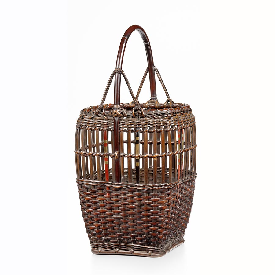 "Yoroi Hitsu Shiki" means "In the form of yoroi armour case".Signed "Chikuunsai zō kore [Chikuunsai made this]"Signed on the box (hakogaki) "ko-yadake yoroi-bitsu-shiki, hanakago" [Old arrow-bamboo, in the form of yoroi armour case]Kaifu Nansō, Chikuunsai zō kore with two seals “Ta tsune no in” [This is made by Chikuunsai, at the Kainansō Studio] with “The seal of Tanabe Tsuneo]”and “ChikuunsaiThe artist’s original given name: Tsuneo 常雄堺府南荘Kaifu Nansō “A House/ Studio Facing South” is a literal translation but the word might read “Minami no shō” which is an area in Sakai City, south of Osaka City.