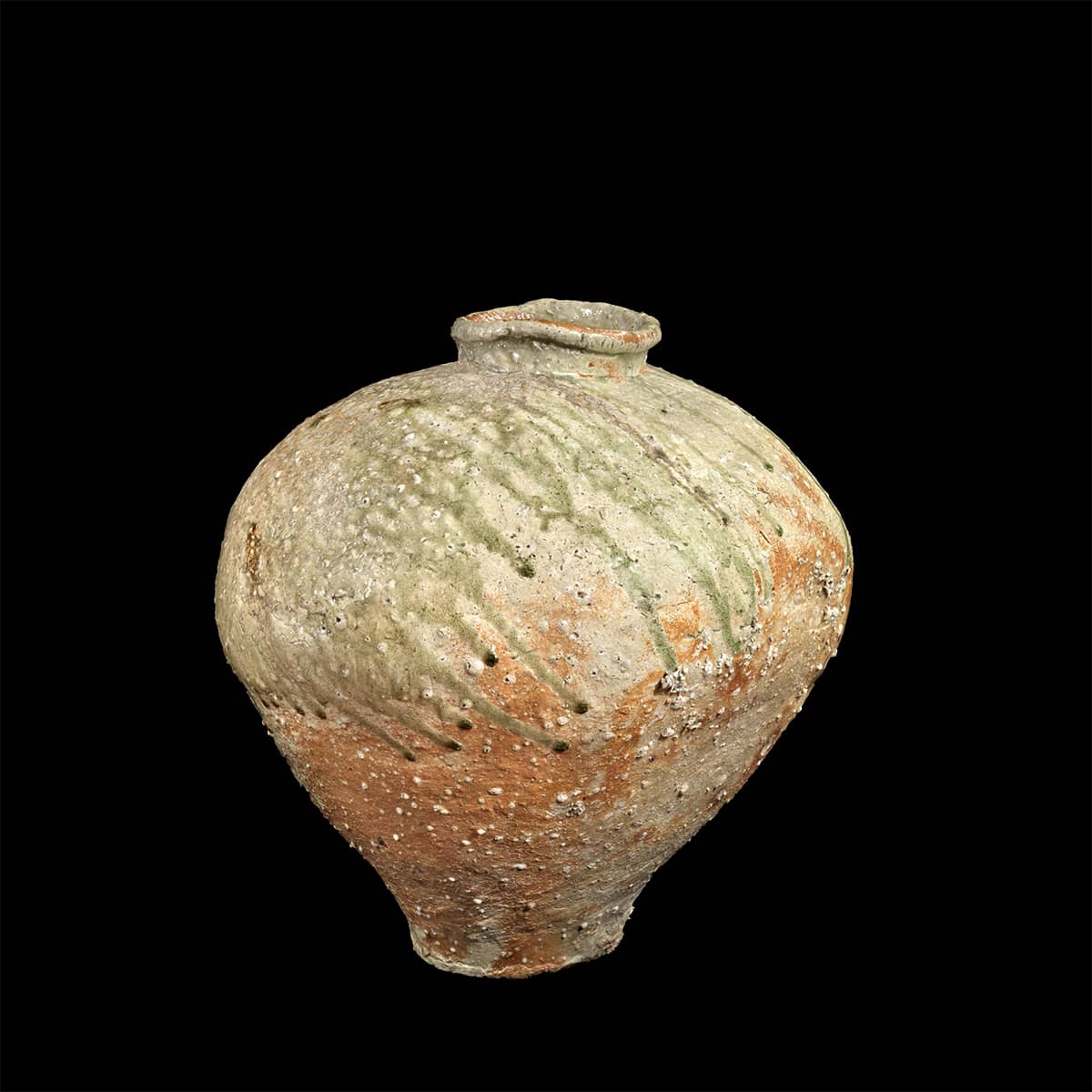 Cette jarre de stockage (tsubo) a été réalisée selon des techniques vieilles de plusieurs siècles en utilisant la merveilleuse argile orangée du lit du lac Biwa.
