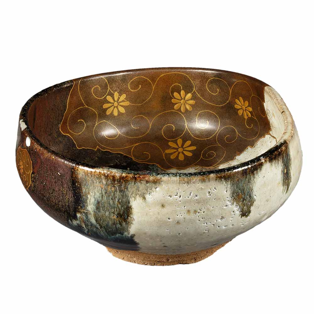 Ce bol à thé ressemble ici à une pièce d'exposition de maître - ou disons une pièce de démonstration, un objet vraiment adapté pour démontrer sa capacité à traiter une pièce de poterie cassée et à transformer les dommages en valeur.