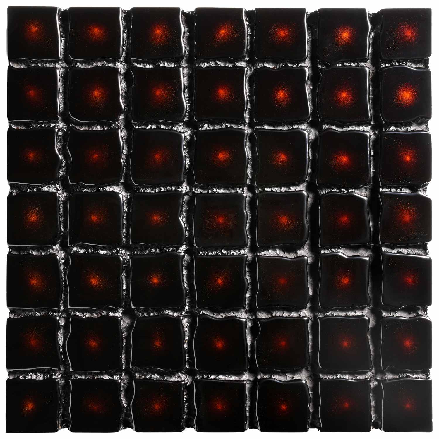 Laque Urushi, poudre d'argent, lin et polystyrène