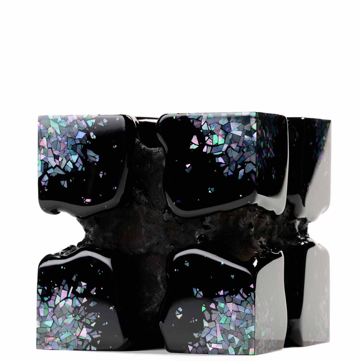 Urushi lacquer, black-lip Oyster, linen & styrofoam