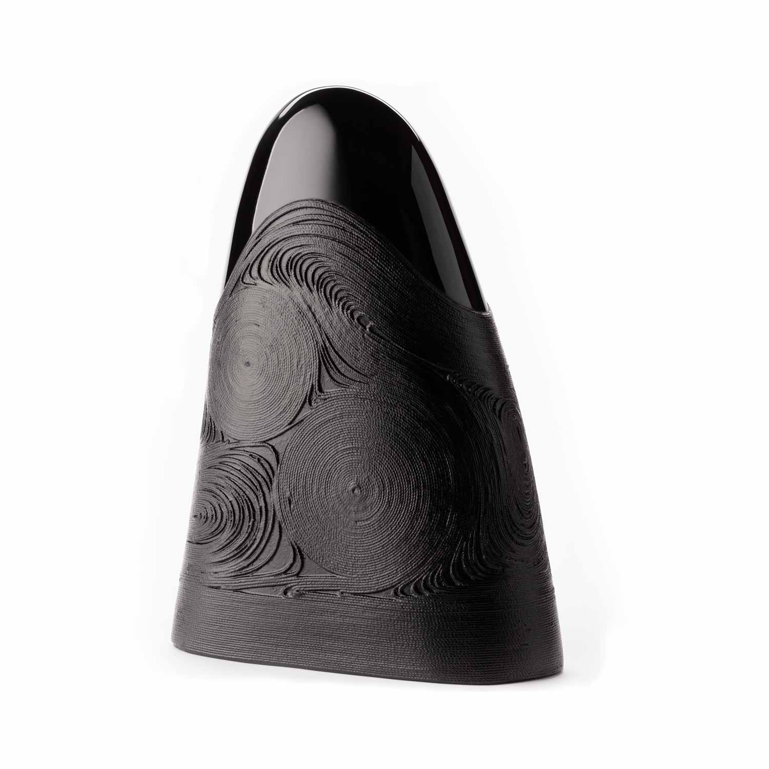 Tout droit sorties d'un pays de cocagne, ses sculptures lisses et noires sur noires, jaillissent comme des monts merveilleux.