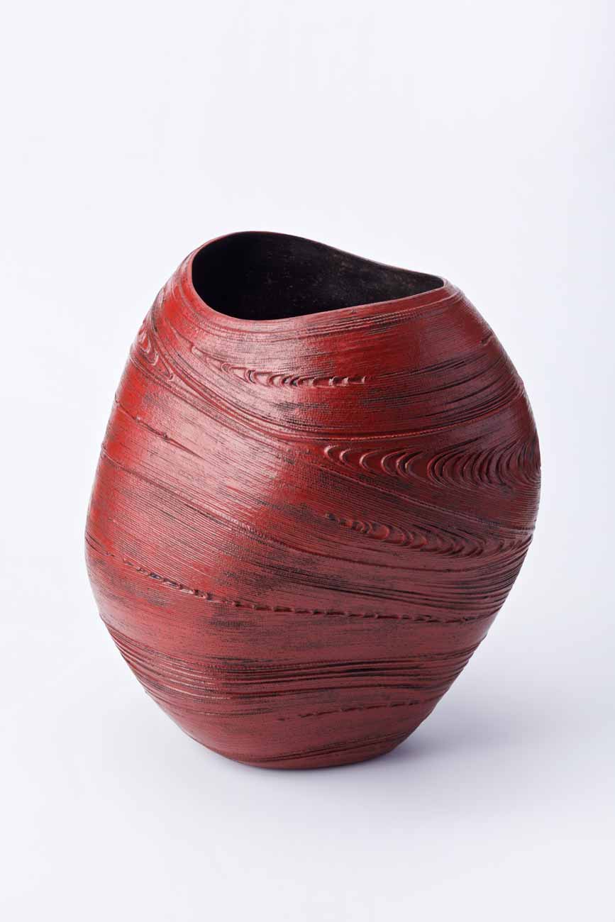 Digne héritier des techniques ancestrales de l'urushi, Ken Noguchi enroule ses cordes sur des moules puis applique la sève du laquier, couches après couches.