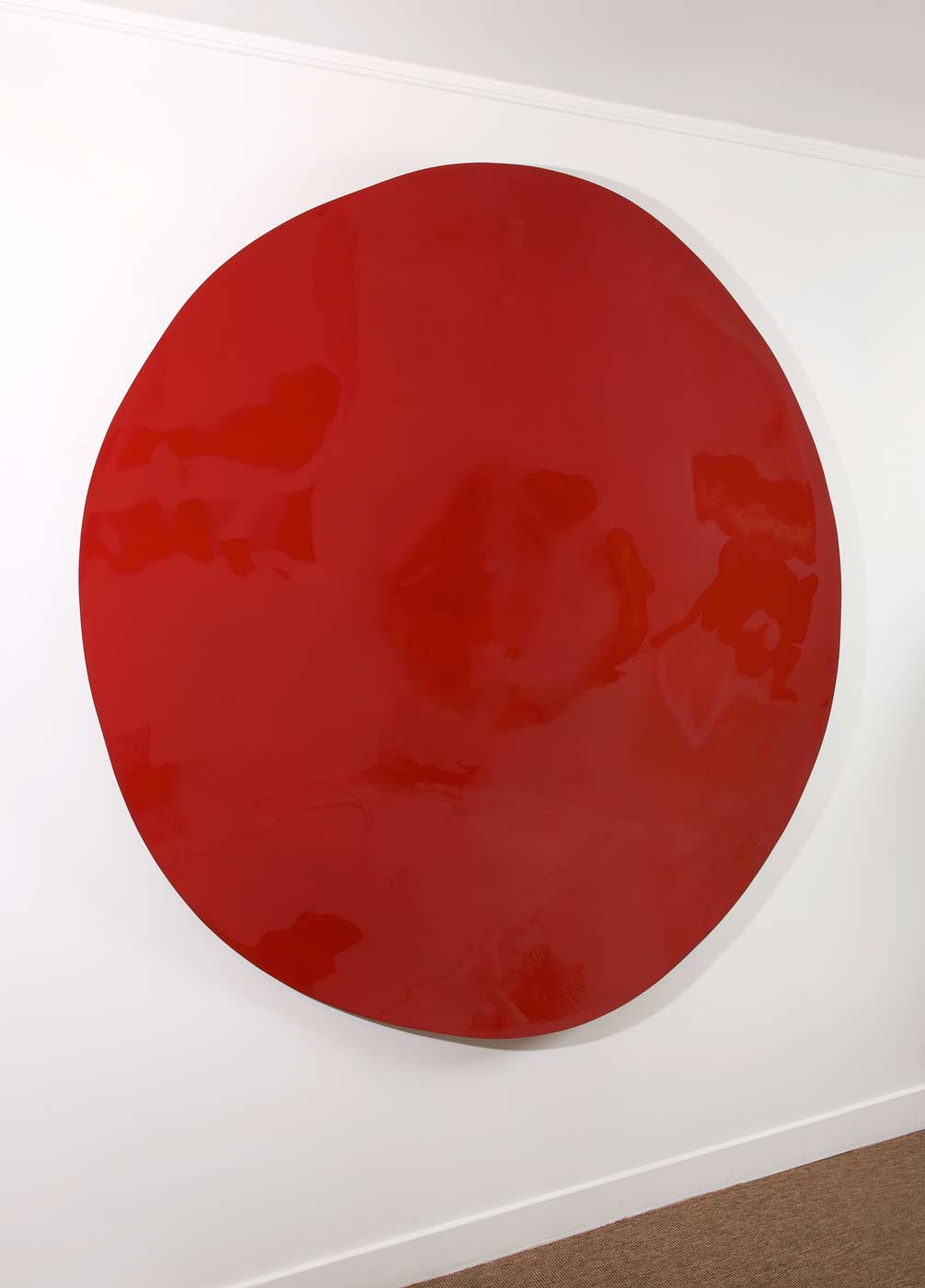 Cette œuvre saisissante, un disque rouge d'une pureté presque irréelle, est entièrement réalisée en laque urushi.