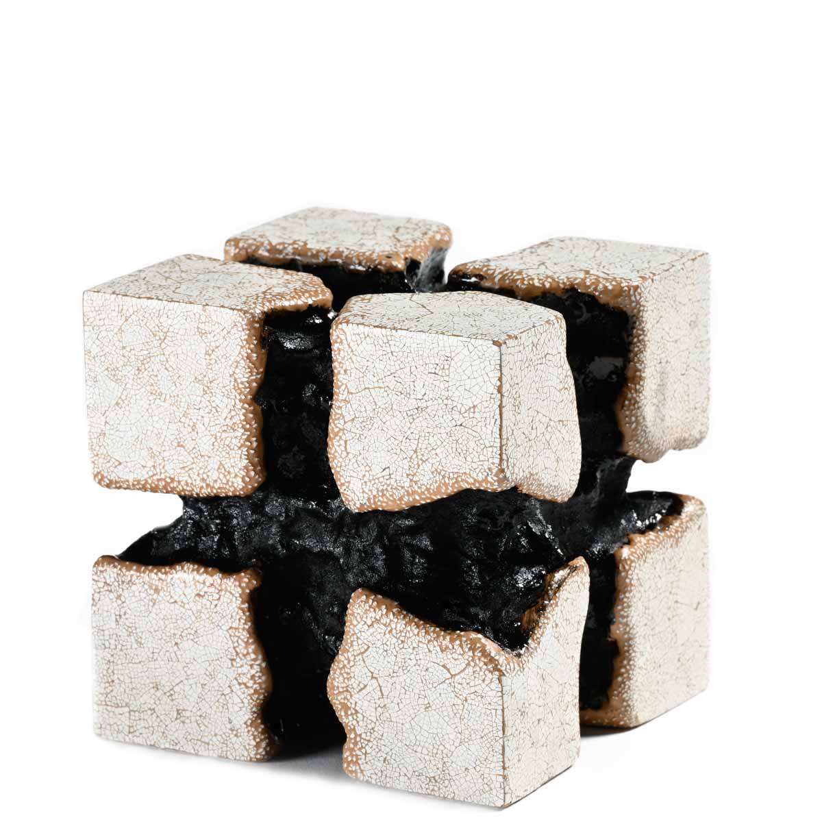 Il sculpte ses formes dans du bois de keyaki (Zelkova serrata) qu'il recouvre de dizaines de couches de laque urushi polie.