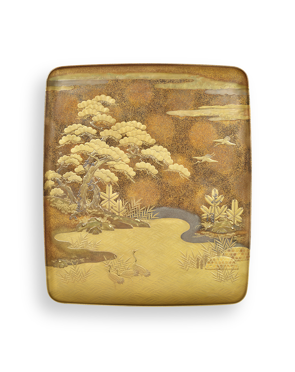 Bunko au décor du Lièvre d'Inaba et de roseaux