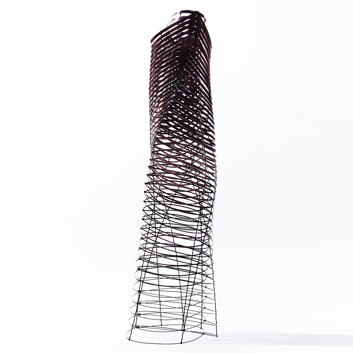 The geometric complexity of these works is the result of a stable structure that was made possible by numerous small resin molds produced by a 3D printer. Tanabe Chikuunsai IV subsequently intervened to construct the final form by inserting strips of bamboo between the molds and the latter are removed once the work is finished. The bamboo thus breathes "life" into a digital image, and acquires the aspect of a special and remarkable material that is simultaneously out of time yet pregnant with a future. Disappear and Hanamushin are expressions of an artistic sensibility rooted neither in architectural models nor traditional works, but are atypical creations that manifestly have a place in a pertinent movement in contemporary art today.