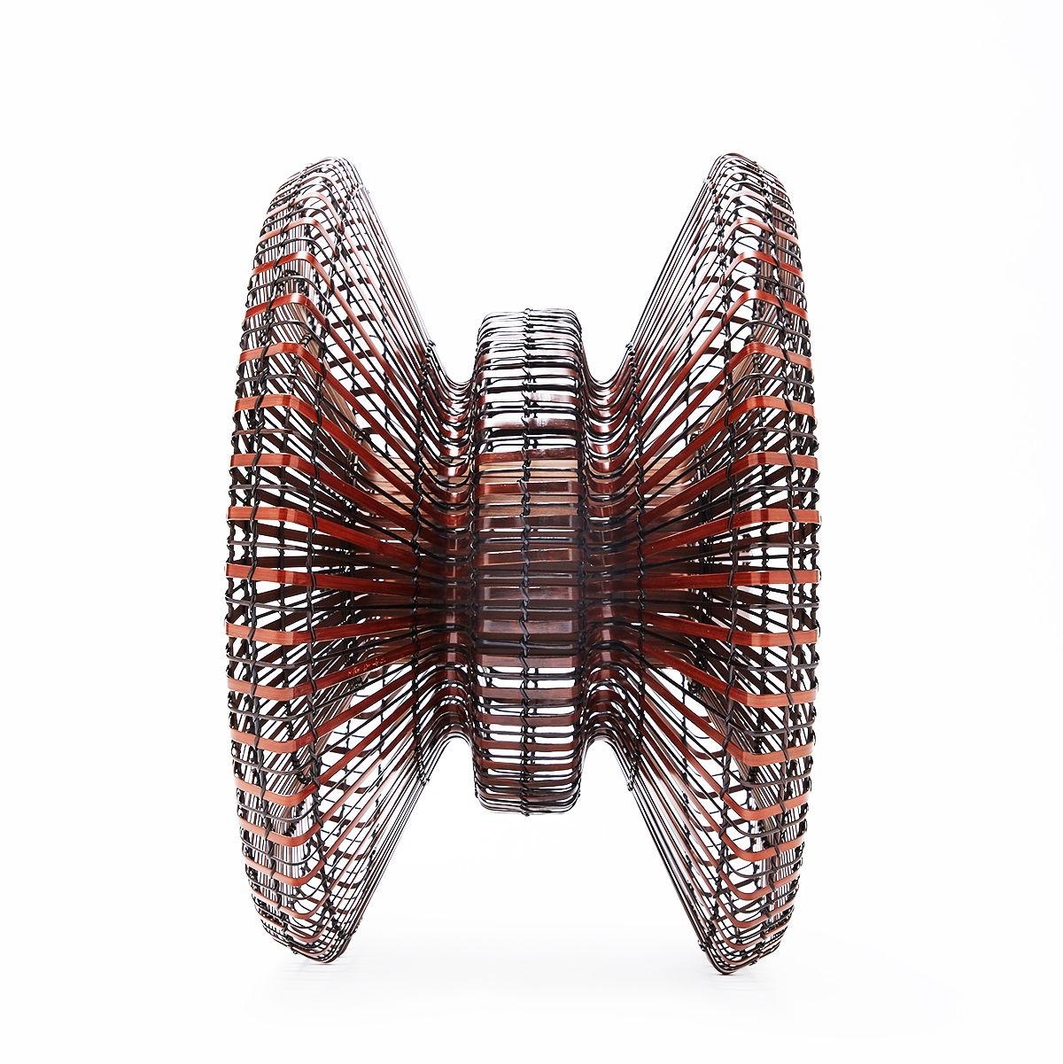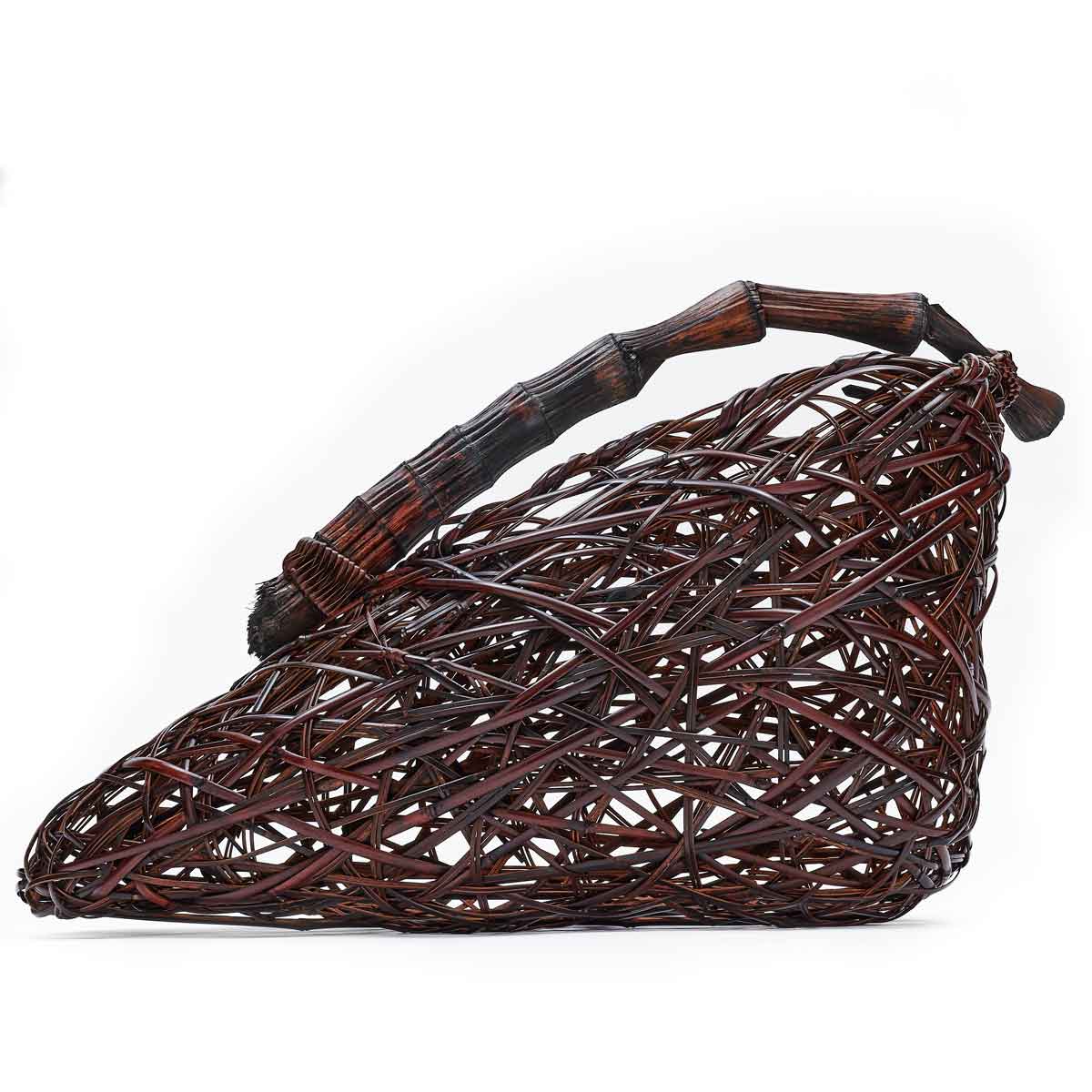 This young artist was initiated into the arts of wickerwork weaving at a very early age, learning first from his father, and then studying fine arts at the Osaka City Crafts High School (1991). He has a degree in sculpture from Tokyo Art University (1999), and is also a graduate of the Bamboo Arts Craft Center of Oita Prefecture (2001). His international activities distinguish him from other bamboo artists. He has been an ambassador for Japanese wickerwork and has shown and given demonstrations all over the world, including in Australia, Korea, the Netherlands, New Zealand, the United States, Switzerland, France, Belgium, Russia, Finland, and Brazil.