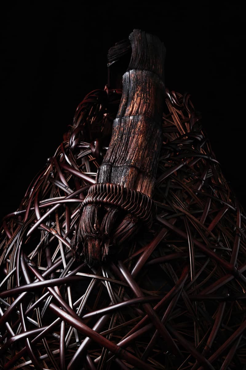 Hōbichiku (smoked dwarf bamboo) kurochiku, (black bamboo), rattan, decayed bamboo & urushi lacquer