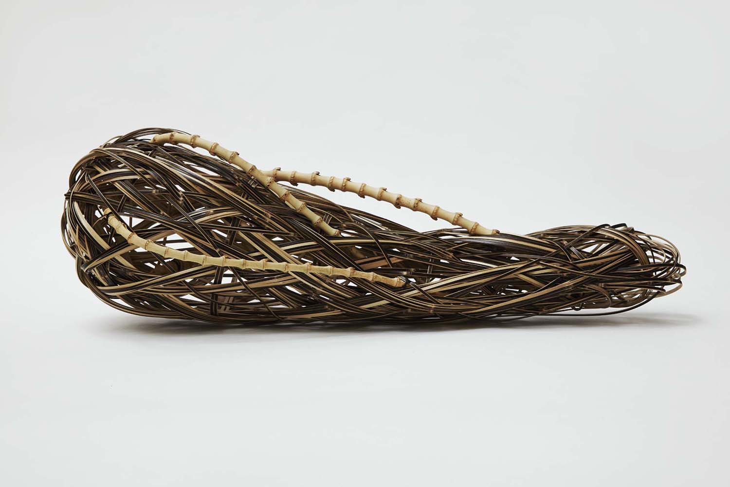 This young artist was initiated into the arts of wickerwork weaving at a very early age, learning first from his father, and then studying fine arts at the Osaka City Crafts High School (1991). He has a degree in sculpture from Tokyo Art University (1999), and is also a graduate of the Bamboo Arts Craft Center of Oita Prefecture (2001). His international activities distinguish him from other bamboo artists. He has been an ambassador for Japanese wickerwork and has shown and given demonstrations all over the world, including in Australia, Korea, the Netherlands, New Zealand, the United States, Switzerland, France, Belgium, Russia, Finland, and Brazil.