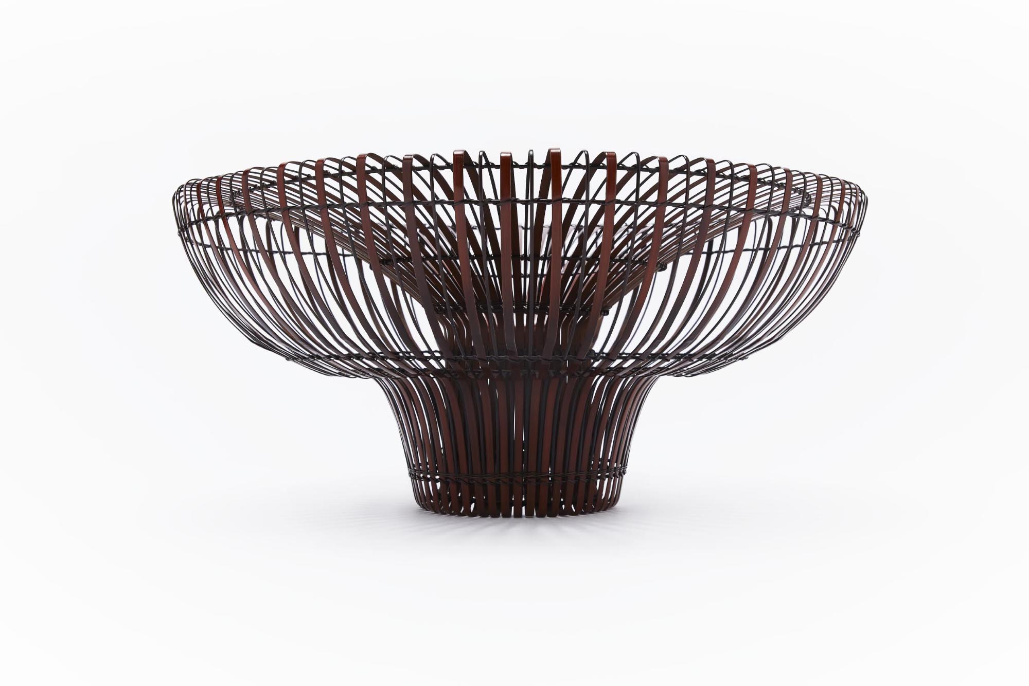 This young artist was initiated into the arts of wickerwork weaving at a very early age, learning first from his father, and then studying fine arts at the Osaka City Crafts High School (1991). He has a degree in sculpture from Tokyo Art University (1999), and is also a graduate of the Bamboo Arts Craft Center of Oita Prefecture (2001). His international activities distinguish him from other bamboo artists. He has been an ambassador for Japanese wickerwork and has shown and given demonstrations all over the world, including in Australia, Korea, the Netherlands, New Zealand, the United States, Switzerland, France, Belgium, Russia, Finland, and Brazil.