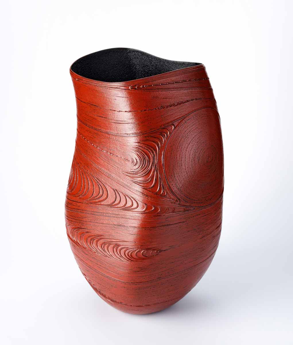 A worthy heir to the ancestral techniques of urushi, Ken Noguchi winds his ropes on molds then applies the sap of the laker, layer after layer.